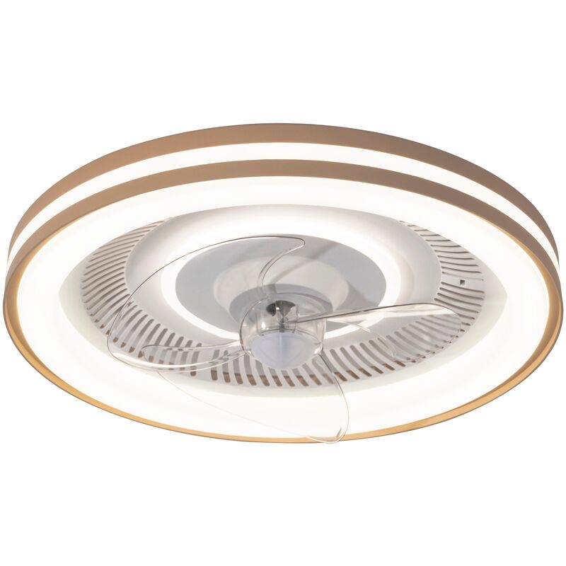 Ventilatore da soffitto con motore DC di 47cm di diametro, ideale per stanze inferiori a 9M2. Con corpo in metallo bianco e dettagli in color legno e tre lame in ABS trasparente. Motore DC di alta qualità che consente elevate prestazioni con consumi e rumorosità minimi. Diventa una luce molto elegante grazie al fatto che le sue lame sono facilmente rimovibili. Funzione estate/inverno inclusa. Viene fornito con una sorgente luminosa LED da 38W 3800 lumen controllata tramite telecomando con timer, che può modificare la temperatura del colore (caldo, neutro, freddo) e l'intensità. Dimensioni (cm): 47x16,5m;