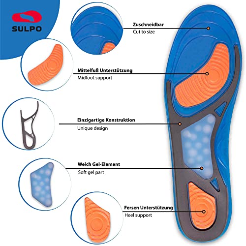 SULPO Solette anti-fascite plantare e tallone - Inserti per scarpe in silicone per uomini e donne - Traspiranti, efficaci contro gli odori - Ideale per sport, ufficio, lavoro,