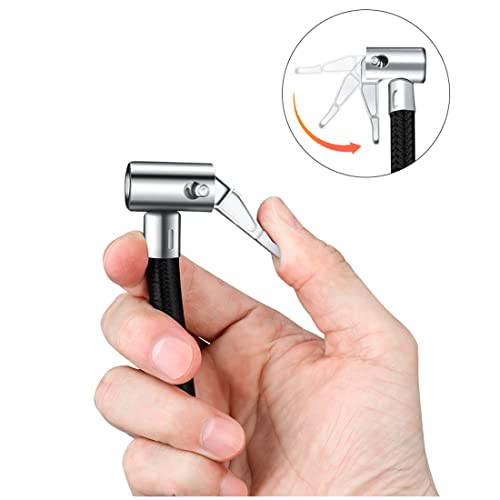 Facile da installare:Avvitare un'estremità di questo al tubo di gonfiaggio, collegare l'altra estremità ai mandrini dell'aria della valvola del pneumatico, quindi avviare il gonfiatore per completare il gonfiaggio necessario per sgonfiare, basta tirare l'ugello dell'aria sul raccordo della pompa saldamente.