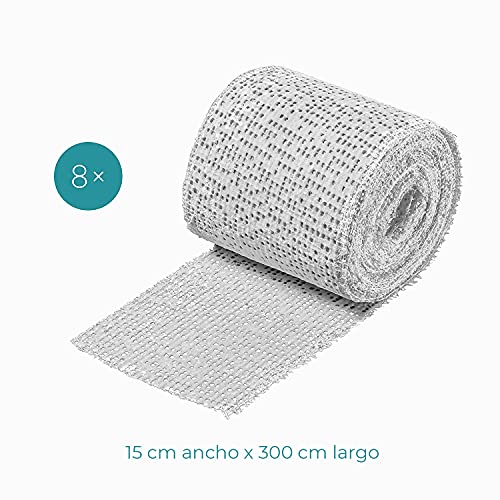 Contenuto della confezione: riceverete una confezione con 8 bendaggi in gesso da 15 cm di larghezza e 300 cm di lunghezza in bianco.