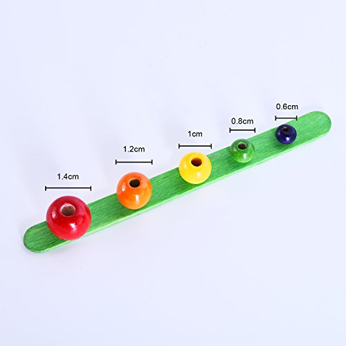 Sumind 500 Pezzi Perline di Legno Colorate Rotonde Perline in Legno per Arti Bricolage Fai da Te, 5 Taglie