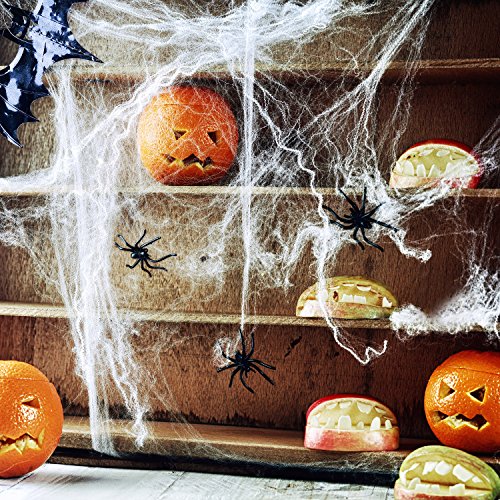 Sumind 3 Pezzi Ragnatela Bianca Ragnatele Pannocchia con 4 Pezzi Ragni di Halloween Ogni Pezzo per Decorazioni di Halloween, Favore di Festa