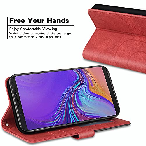SUMIXON Cover per Galaxy A9 2018, Custodia in PU Pelle per Samsung Galaxy A9 2018, Portafoglio Cover a Libro con Chiusura Magnetica e Slot per Carte, Rosso