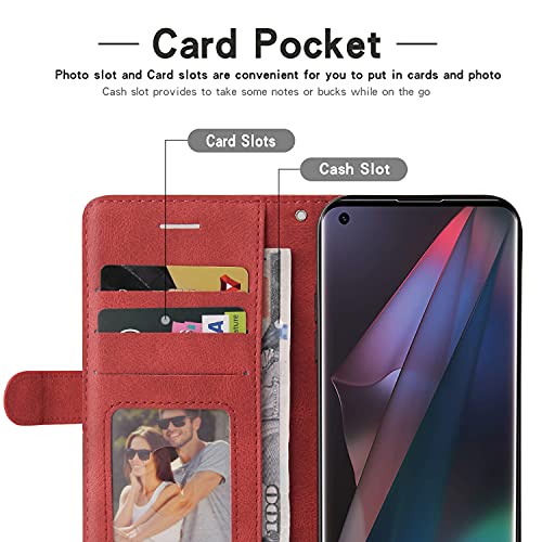 SUMIXON Cover per Oppo Find X3 PRO/Oppo Find X3, Custodia in PU Pelle per Oppo Find X3 PRO/Oppo Find X3, Portafoglio Cover a Libro con Chiusura Magnetica e Slot per Carte, Rosso