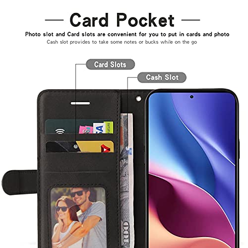 SUMIXON Cover per Redmi K40 / Redmi K40 PRO/Xiaomi Poco F3 / Xiaomi Mi 11i, Custodia in PU Pelle per Xiaomi Poco F3 / Xiaomi Mi 11i, Portafoglio Cover con Chiusura Magnetica e Slot per Carte, Nero