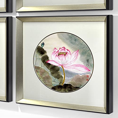 Summer Lotus Flower Canvas Art Poster cinese e stampa Antichità Wall Art per soggiorno decorare-50x50cmx4 Frameless