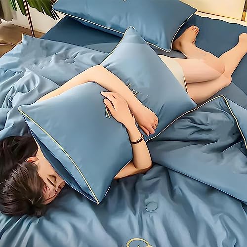 ❄️[Lightweight Quilt for Bed] Cool ice silk summer comforters blanket is easy to clean and maintain, and they are suitable for all ages and skin types. Ice silk summer quil is perfect for keeping you cool during those hot summer nights. Plus, they are lightweight and easy to carry around when you're on the go.