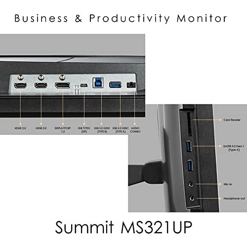 MSI Summit MS321UP Monitor flat 32" pre-calibrato, 3840x2160 (UHD), Pannello IPS, 16:9, 60Hz, HDR 600, HDMI, USB Type C, stand regolabile, VESA