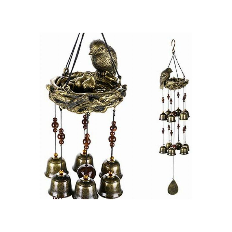 Descrizione: È una bella decorazione per il vostro giardino, casa, potete appenderla al arbusto o alla finestra, perfetta per rilassamento, meditazione, ecc. Bellissima campana che dà un suono cristallino molto piacevole, non doloroso all'orecchio. La fabbricazione del nido e delle perle è molto delicata. Specifiche: Colore: ottone. Materiale: leghe di rame. Altezza: 65 cm. Larghezza nido: 13 cm. Dimensione campana: 3,7 cm x 3 cm. Motivo: nido d'uccello. Peso: 600 g. Confezione: 1 campanelli a vento (nido).
