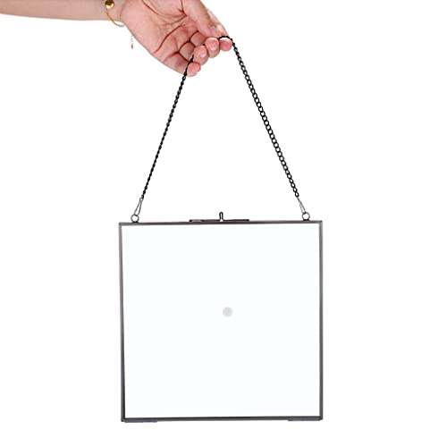 SUMNACON Cornice portafoto da appendere, in metallo e vetro, per famiglia, matrimonio, foto, decorazione geometrica, pianta campione, clip per fiori pressati, foto 20 cm (quadrato, nero)