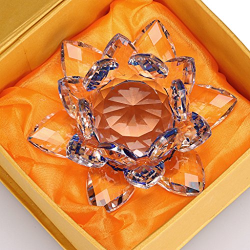Sumnacon Fiore di loto Cristallo, dia 100mm(4")- per la decorazione domestica, regalo ideale per compleanno, feste (blu)