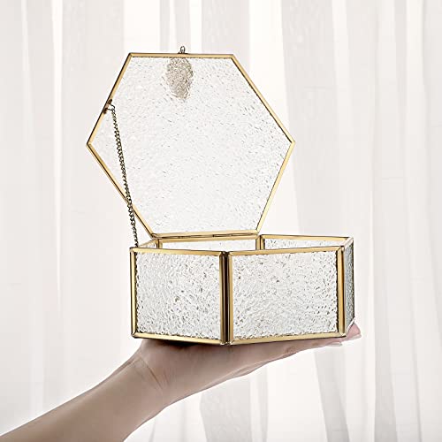 SUMNACON portagioie vintage dorato in metallo e vetro portagioie portagioie portagioie per gioielli da donna regalo per Natale, matrimonio, compleanno, esagonale