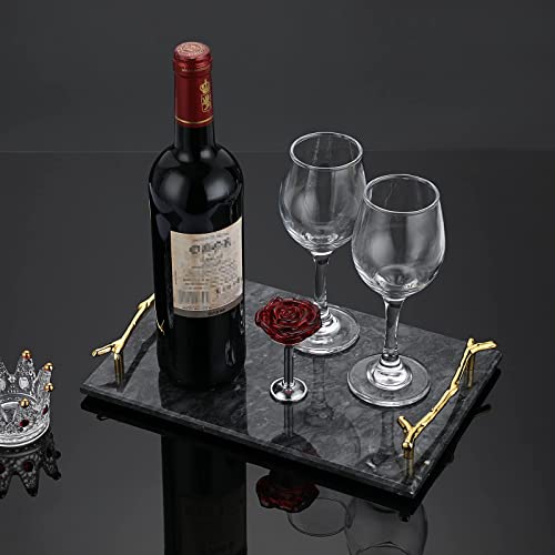 SUMNACON vassoio da portata rettangolare in marmo con manici a foglia piatto da portata vassoio piatto portagioie per tavolino soggiorno cucina portaoggetti articoli da toeletta