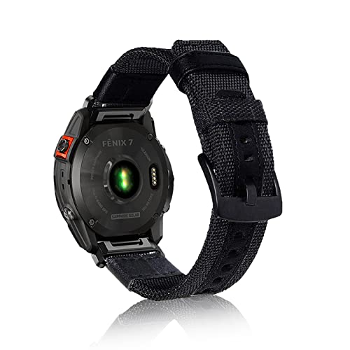 SumRioo QuickFit 22mm Cinturino per Garmin Fenix 7 Pro Solar/Fenix 7/Fenix 6 GPS/Fenix 6 Pro GPS, Tela Nylon Pelle Cinturini per Garmin Fenix 6 Pro Solar/Fenix 5/Fenix 5 Plus - Nero