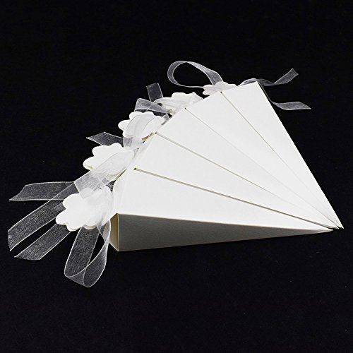 Sumshy 100 PZ Bianco Coni Portaconfetti Confettata per Matrimonio, Cono portariso, Scatola scatolina bomboniere segnaposto per Matrimonio, compleann, Battesimo, Comunione, Nascita, Laurea, Natale