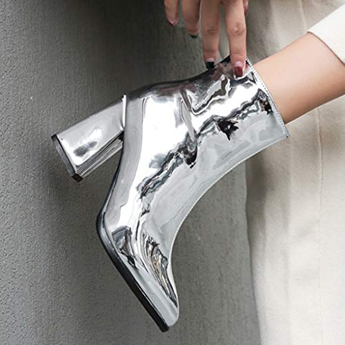 SUMTTER Stivali Corti Donna Scarpe Donna Tacco Medio Donna Caviglia Stivali Autunno/Invernali Ankle Boots di Lustro da Festa