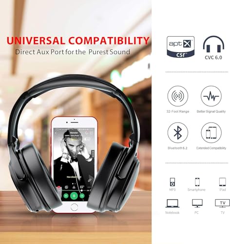 Sumvision Psyc Wave RX - Cuffie Wireless Bluetooth 4.1, Stereo Hi-Fi ad alta efficienza, CVC 6.0 con cancellazione del rumore, microfono integrato per cellulari, PC, laptop, TV e viaggi.