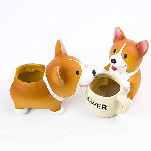 SUN-E Lovely Corgi Dog a Forma di pianta Decor Piante succulente Vaso di Fiori Decorativi 2 in Set Idea Regalo Perfetto