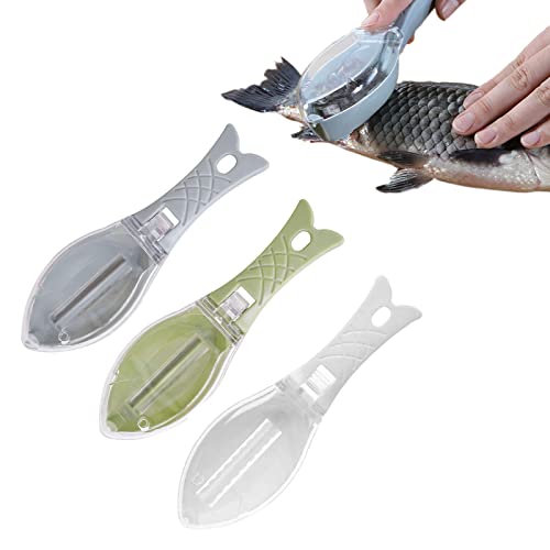 Sunbbingsp Raschietto Squame Pesce, 3 PCS Raschietto per Pesce, Squama Pesce Professionale con Coperchio Trasparente per Cucina, Ristorante per Raschiare Squame di Pesce, Utensili da Cucina