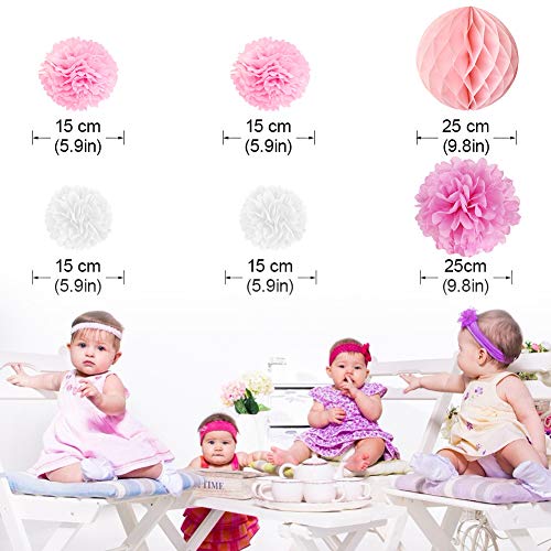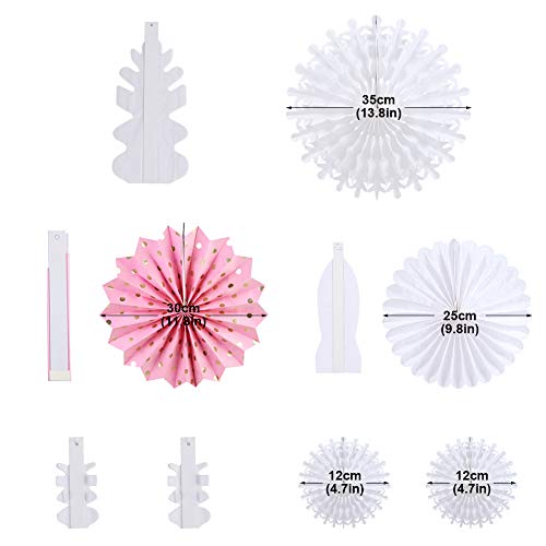 SUNBEAUTY 11 Pezzi Rosa Carta Decorazione Rosone Bianco per Anniversario, Compleanno, Baby Shower, Matrimonio, Casa Decorazione Interno, Supermercato