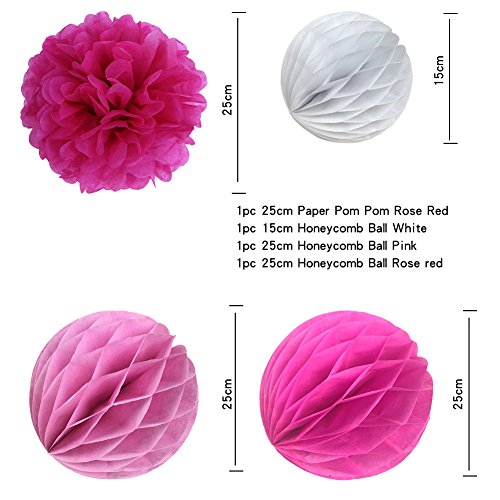SUNBEAUTY Stile rosa rossa 8 pezzi con pompon e Farol fiore di carta appeso decorazione per la festa nuziale di compleanno di bambino di Pasqua