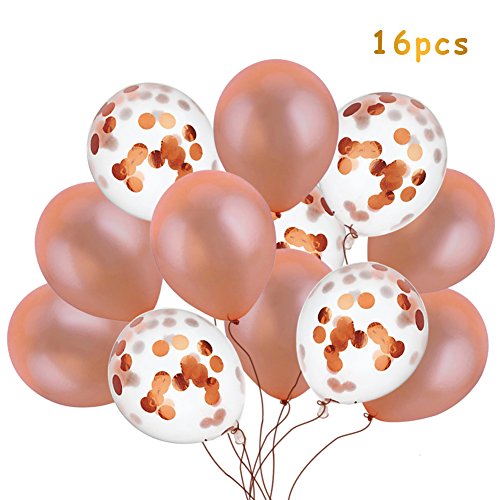 ✿Quantità: 6pcs palloncini in lattice oro rosa 18 pollici + 10 pezzi palloncini coriandoli oro rosa 18 pollici