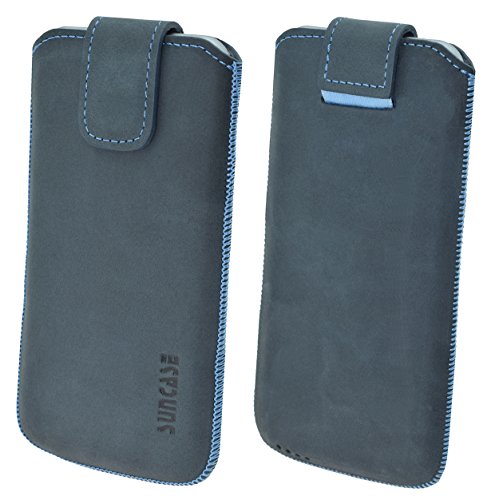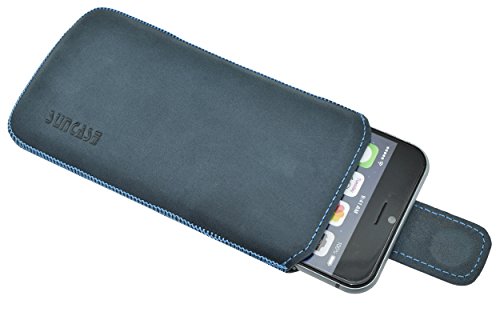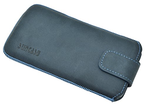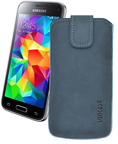 Suncase Custodia originale per Samsung Galaxy S5 Mini (SM-G800F), in pelle, con linguetta di estrazione, colore: blu