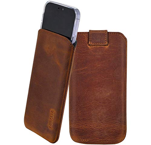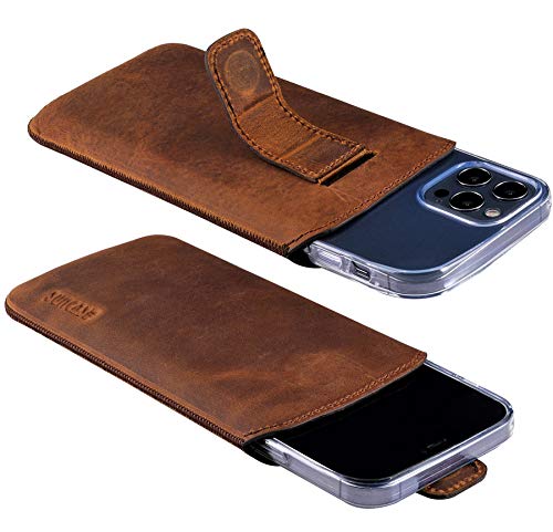 Suncase - Custodia in vera pelle compatibile con iPhone 12 Pro (6,1''), con funzione di estrazione e chiusura magnetica, colore: Caffè antico