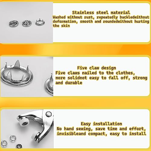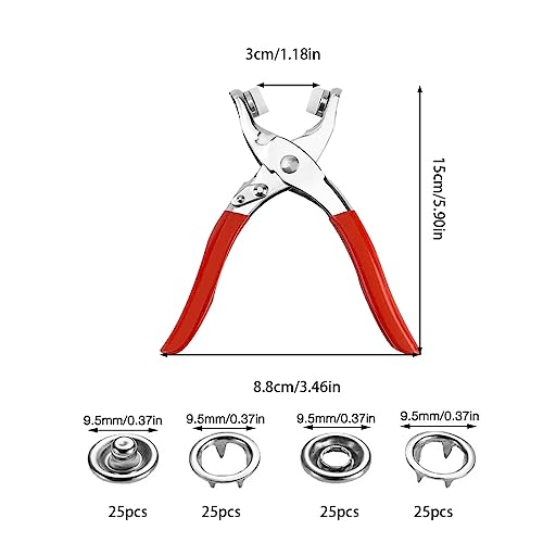SUNCHE 100 Pezzi Bottoni a Pressione in Metallo, Bottoni Automatici con Pinza, Set di Strumenti per Bottoni a Pressione, Bottoni Automatici, Rivetti Senza Cuciture, per Scarpe Abbigliamento Tappeti