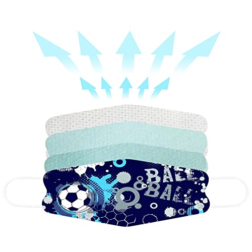 Sundaylikelife Mascherine Bambini Mascherine Colorate Certificate 5 Strati Tessuto Viso 50 Pezzi Mascherine Bambini scarabocchio di calcio Traspirante Alta efficienza di filtrazione > 95% (I)