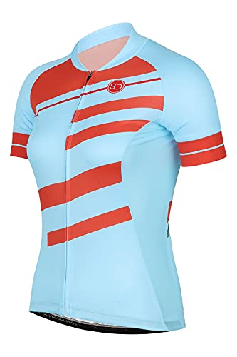 SUNDRIED Manica Corta Retro Ciclo Jersey Bici della Strada Signore Superiori Blue Mountain Bike Shirt Donne (Blu, L)
