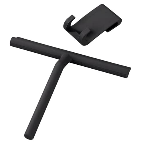 Suneech Tergicristallo in Silicone, Lavavetri in Silicone Tergivetro Doccia Senza Forare con Staffa per pulizia vetri vetro Specchio Bagno Specchio Pulizia Vetri Piastrelle Estrattore per Doccia Nero