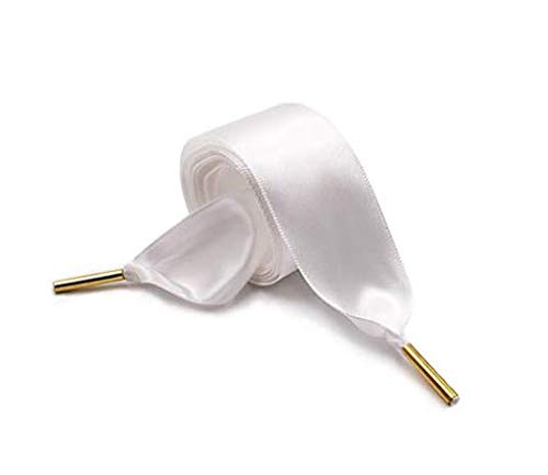 Sunei.f 1 paio di lacci per scarpe alla moda, in seta, raso, pizzo, lucidi, larghi, piatti 1 bianco