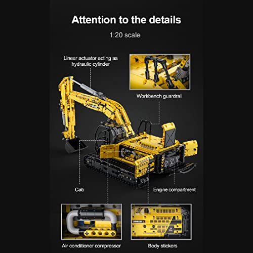 Sunery CADA C61082W - Escavatore radiocomandato, 1702 pezzi, 2,4 G, tecnologia RC, modello con 4 motori e telecomando, 1/20 MOC, compatibile con Lego Technic