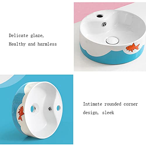 SUNESA Lavandino Bagno Piccolo lavandino for Il Bagno Adatto for Bambini, Carino lavabo Rotondo/lavandino da Lavoro in Ceramica e Set di rubinetti (con Overflow) Lavelli Bagno