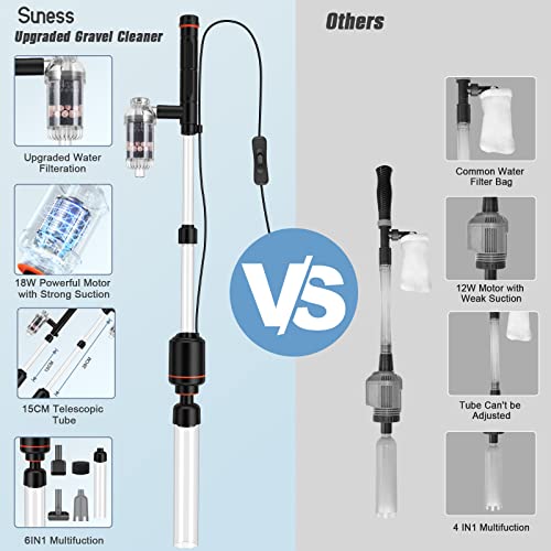 Suness Aspirapolvere Elettrico per Acquario, 6 in 1, Set di Pulizia Automatico per Acquario, tettarella per Cambio Acqua, Filtro Acqua e circolazione dell'Acqua, 18 W