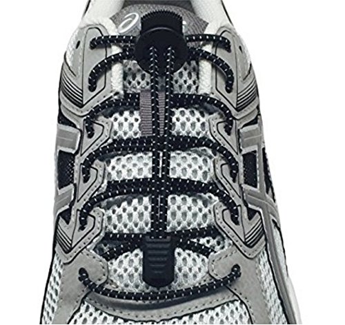 SunFei Shoe Laces, Lacci Elastici per Scarpe Sportive, Allacciatura Veloce con Sistema autobloccante con fermacorda (Nero/Puntini Bianchi)