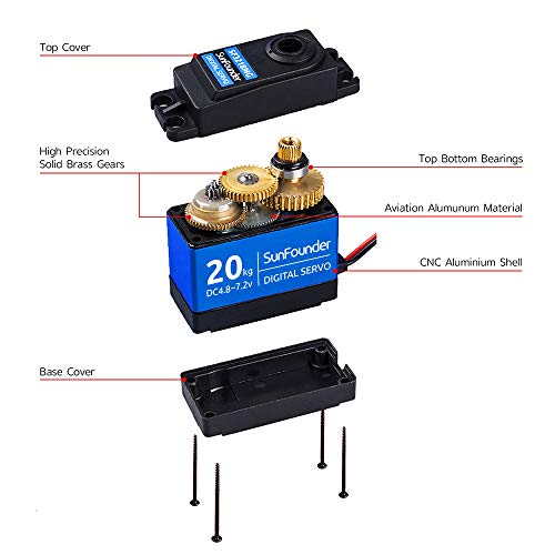 SUNFOUNDER 20KG Servo Motor High Torque Servo, TD8120MG Metal Gear Digital Servo, Aluminium Case, Control Angle 270° for RC Robot Cars