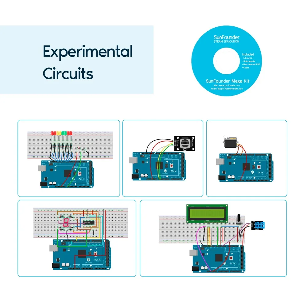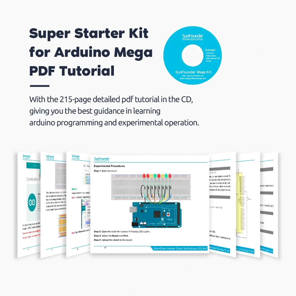 SunFounder Mega 2560 R3 Project Starter Kit for Arduino UNO R3 Mega2560 Mega328 Nano+26 Tutorials+LED+resistor+CD