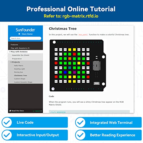 SunFounder Pannello a matrice di LED RGB 8x8 64 compatibile con Arduino Controllo I2C indirizzabile individualmente Schermo a matrice di LED programmabile a colori a 24 bit