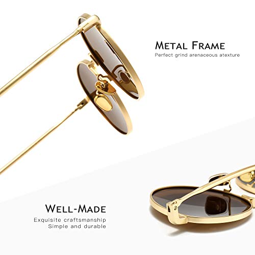 SUNGAIT Occhiali da Sole Polarizzati Vintage Rotondi Occhiali da Sole Classici con Montatura in Metallo Retrò Circolari per Donna e Uomo-SGT059(Montatura Oro/Lenti Polarizzate Marroni)