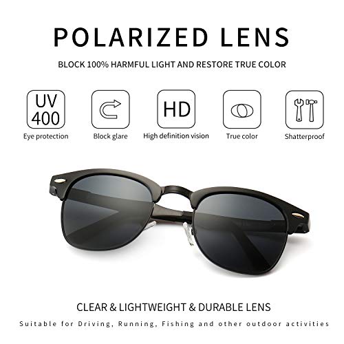 SUNGAIT Retro Round Semi-senza Montatura Occhiali da Sole Polarizzati Protezione UV per Uomini/Donne (Montatura Nera/Lente Polarizzata Grigia)
