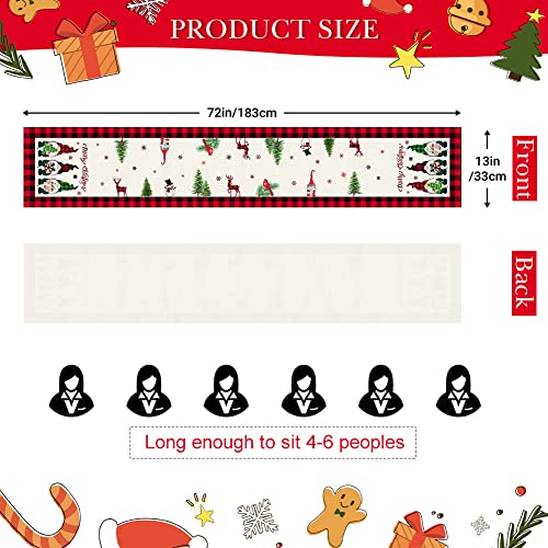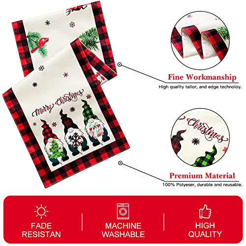 Sungeek Runner da Tavola Natale in Lino, Runner Tavola a Tema Natalizio per Natalizie Della Fattoria Decorazione del Tavolo da Pranzo Della Cucina, 30 x 180 cm (Gnomi Nero Rosso Plaid)