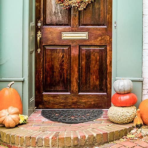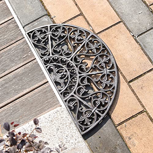Sungmor Zerbino in ghisa resistente, design vintage e bellissimo motivo a vite e 62 cm, tappetino per porta d'ingresso a semicerchio grande, antiscivolo, raschietto per scarpe, tappetino decorativo