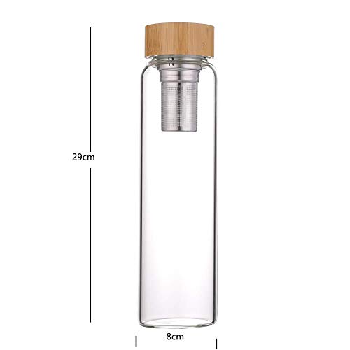 Sunkey Bottliglia Acqua 1 Litro in Vetro Borosilicato con Infusore per tè bambù Tappo Bpa Free