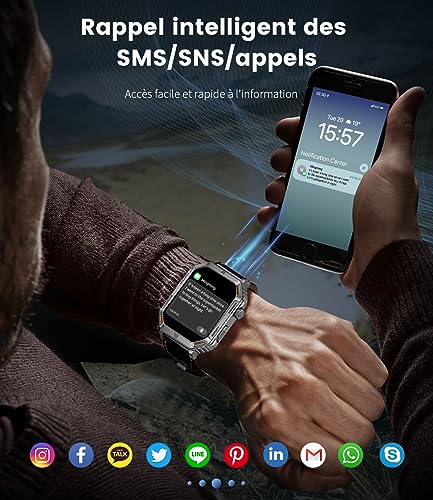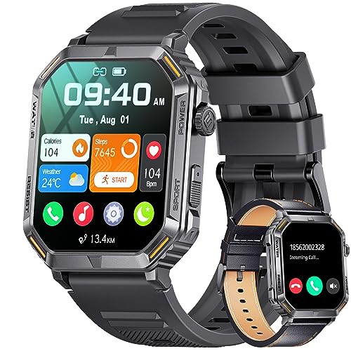 【100+ sport e gestione della salute】 Questo smartwatch robusto ha 100+ modalità sportive che possono registrare i dati sportivi in base allo stile sportivo, tracciare la condizione corporea, i passi, le calorie bruciate, ecc. L'orologio sportivo intelligente militare ha un chip biosensore integrato, un cardiofrequenzimetro 24 ore su 24 e un monitor del sonno per aiutarvi a regolare i vostri modelli di sonno.