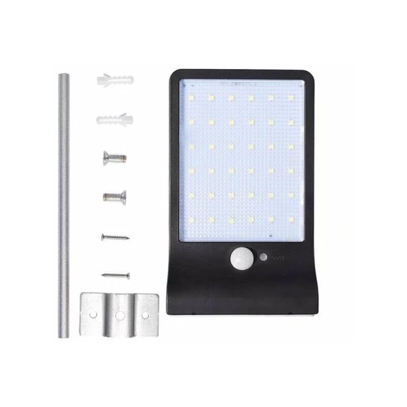 Pannello solare: Polisilicon 6V 2.5W Batteria al litio: 3.7 V 220OMAH Specifiche LED: 36 * SMD2835 28 LUMINS High Scream Lamp Perline Modalità di lavoro: sempre accesa per 5 ore / induzione del corpo umano + leggermente leggero / induzione del corpo umano flussi luminosi: 450 lumen Potenza di uscita: 3.2v3.8w Distanza di induzione: 5-10 metri Angolo di induzione: 120 gradi Campo di illuminazione: 50m ' Colore a LED: luce bianca Materiale: ABS + PC ABS + PC + Anti-ultravioletto Materiale in acciaio in plastica Indice di tenuta: IP65