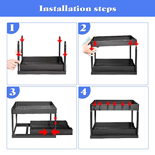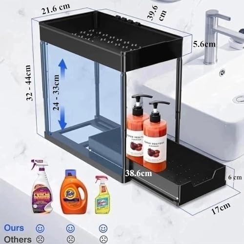 Sunlight encounter Scaffale sottolavello a 2 Livelli,Organizzatore Sotto il Lavandino,Scorrevole Scaffale Portaoggetti con 6 Ganci,Estraibile Cassetti Organizer per Cucina Bagno per Cucina Nero
