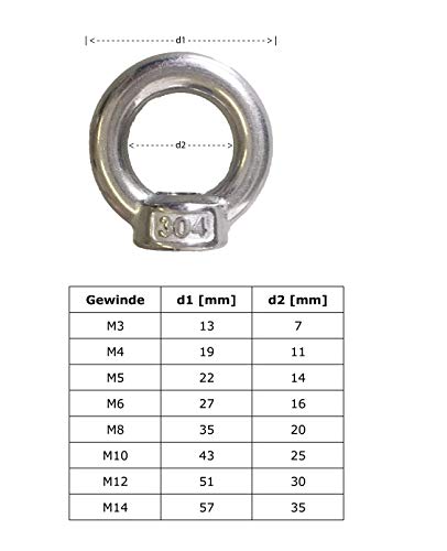 Sunload Dado ad anello simile a DIN 582, acciaio inox inox AISI 304 V2A, lucido, 10 pezzi (M4)