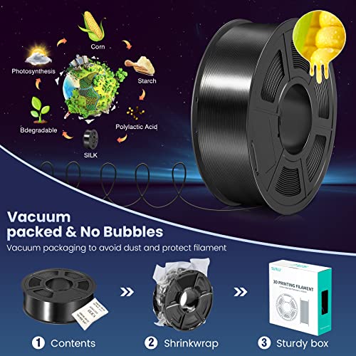 SUNLU Filamento PLA Plus Seta Lucida 1.75mm per Stampante 3D, Silk PLA+ Filamento con Finitura Liscia e Setosa, Buona Resa Colore, Precisione Dimensionale +/- 0,02 mm, 1kg (2,2lb) Bobina, Silk Nero